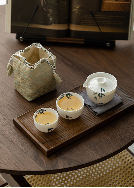 Hand-Painted Bamboo Travel Tea Set