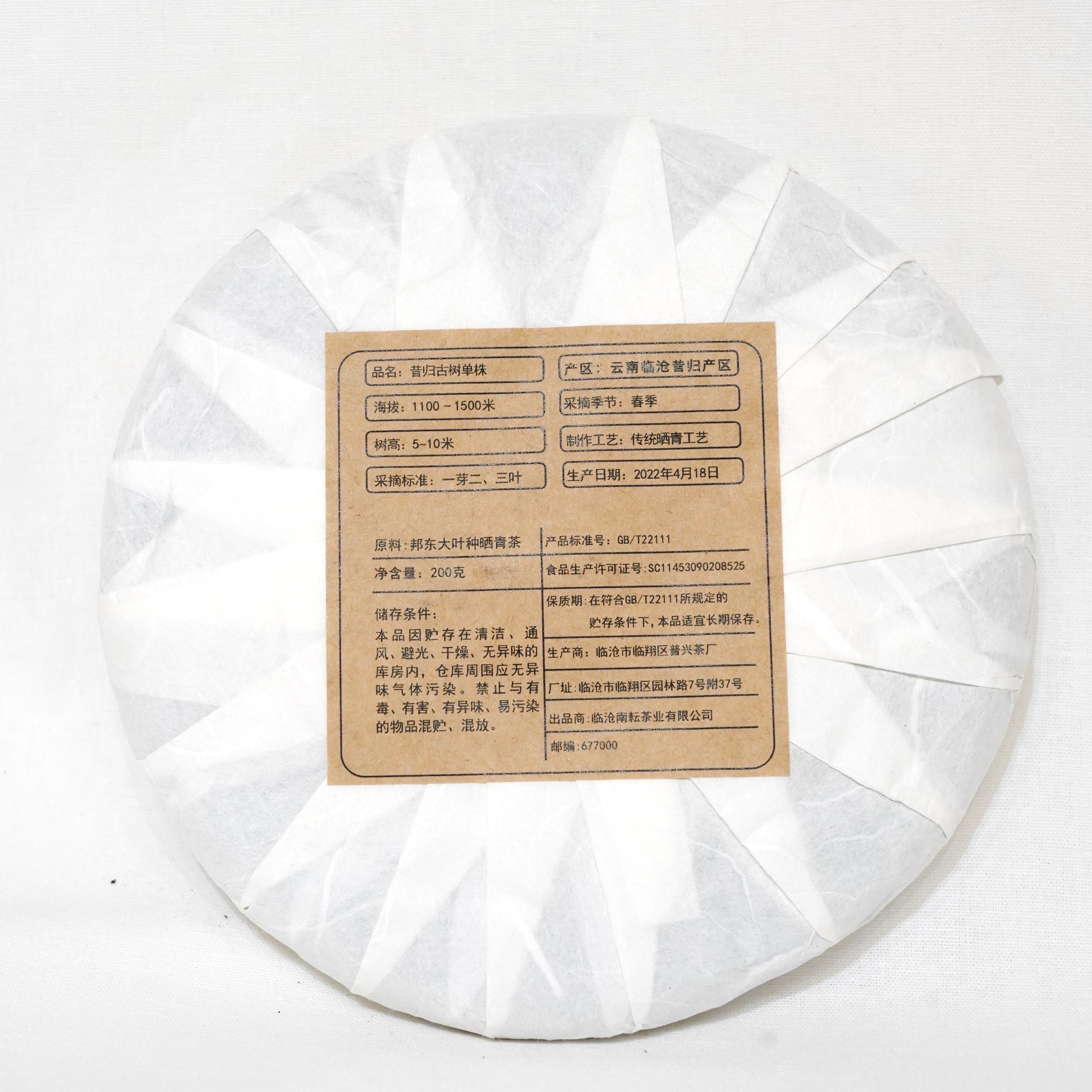 Raw pu-erh ancient single tree cake 200g